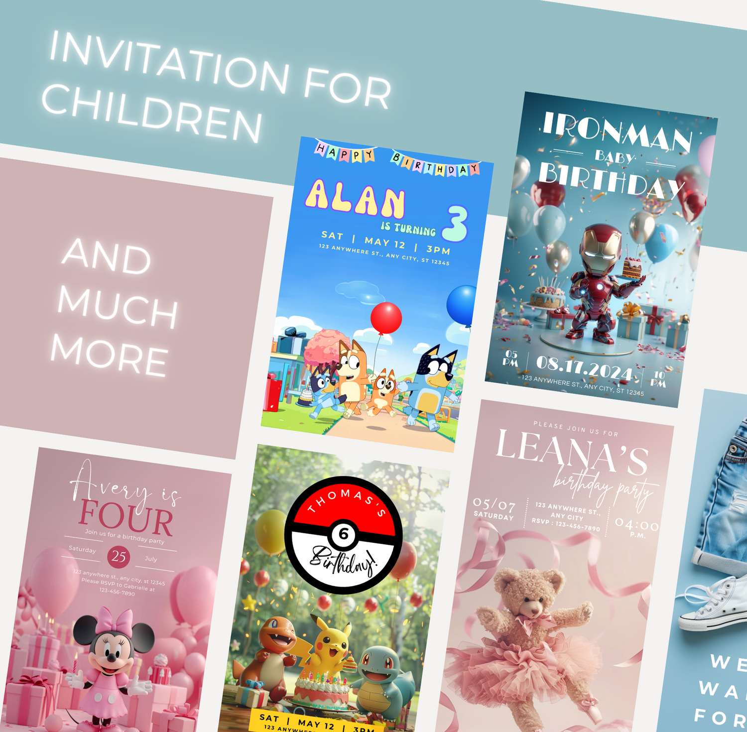 Choose from our delightful range of unique Children's Party Invites, featuring ready-to-use...