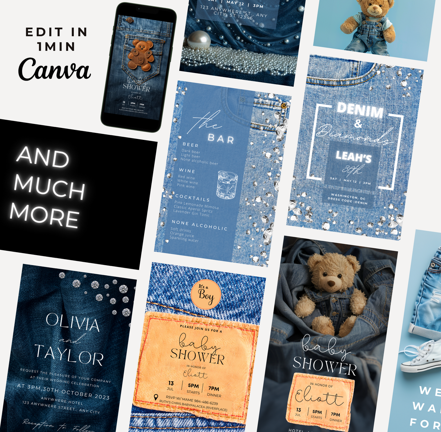 Digital Denim Invitation Label | Phone Evite | Canva Birthday Invitation | DIY Editable Party Invitation | MinimalistPrintByAnais