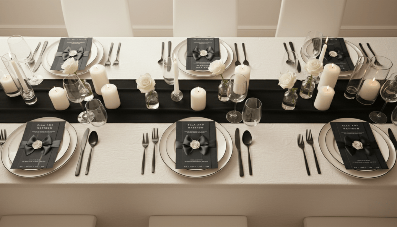 Chanel-Inspired Black and White Wedding Invitation Template – Elegant Minimalist Camellia Bow Design | Editable Canva Download by Minimalist Print by Anaïs